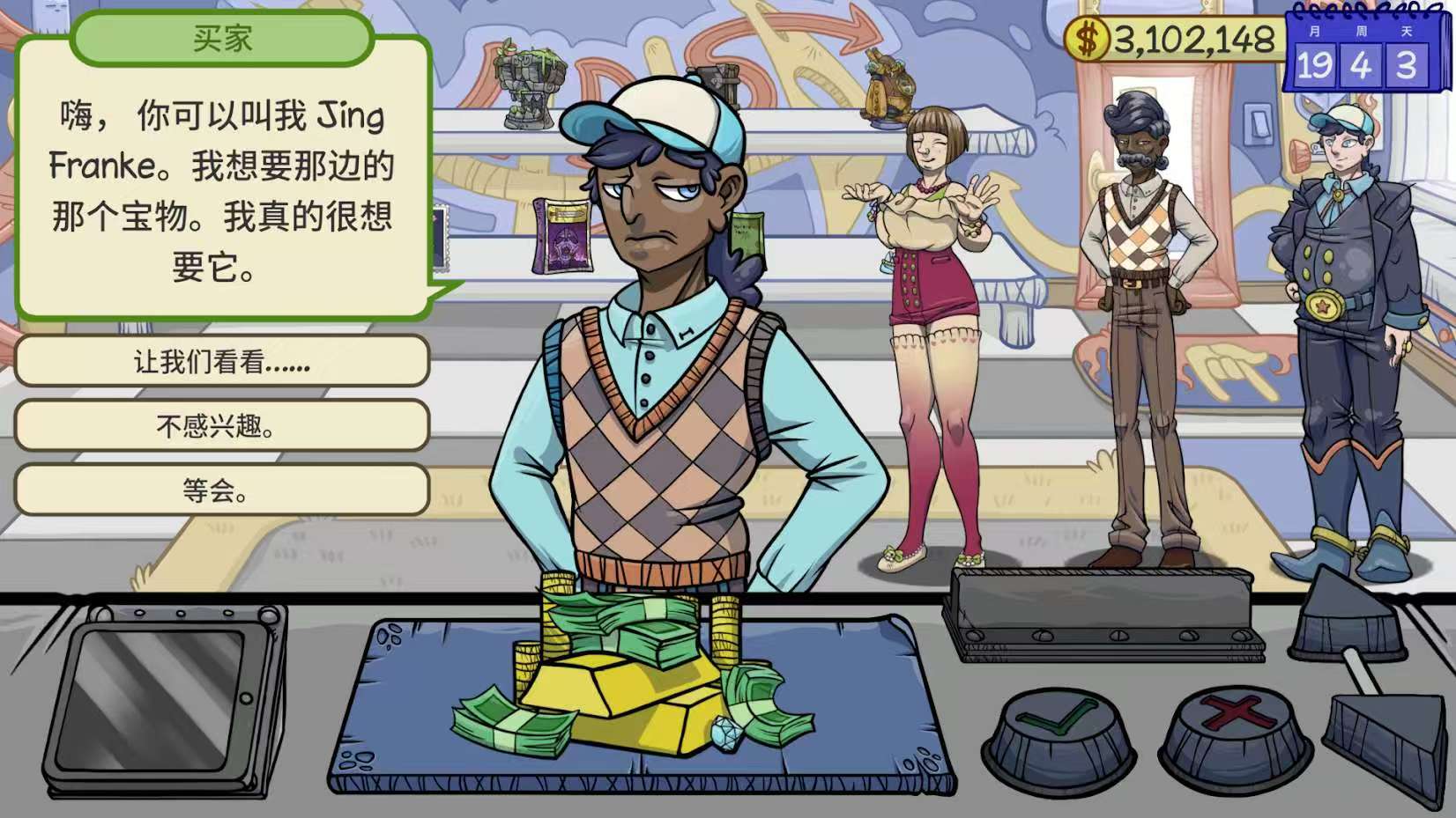 3. 随机事件:骗子、假货、神秘保险箱等突发事件,让每次交易都充满悬念。