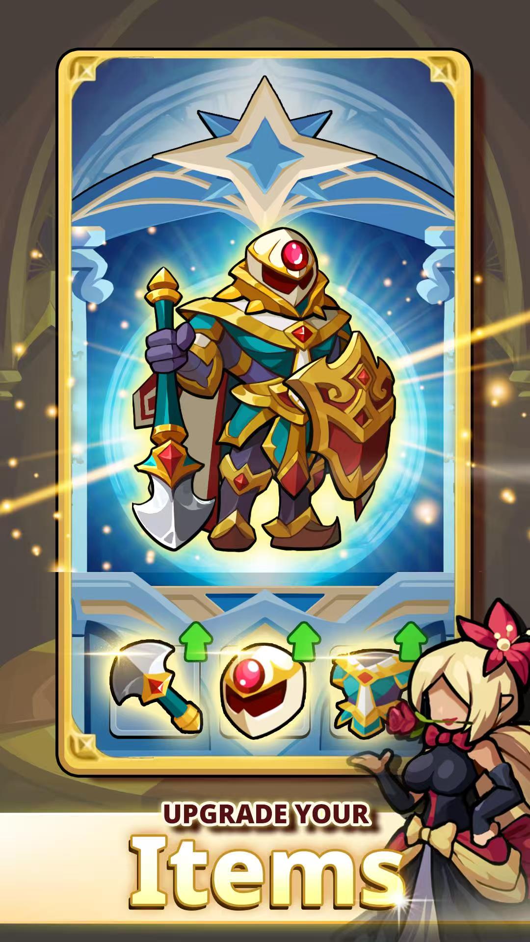1. 像素英雄收集:招募、升级、定制专属技能树,搭配神器打造独一无二的阵容。