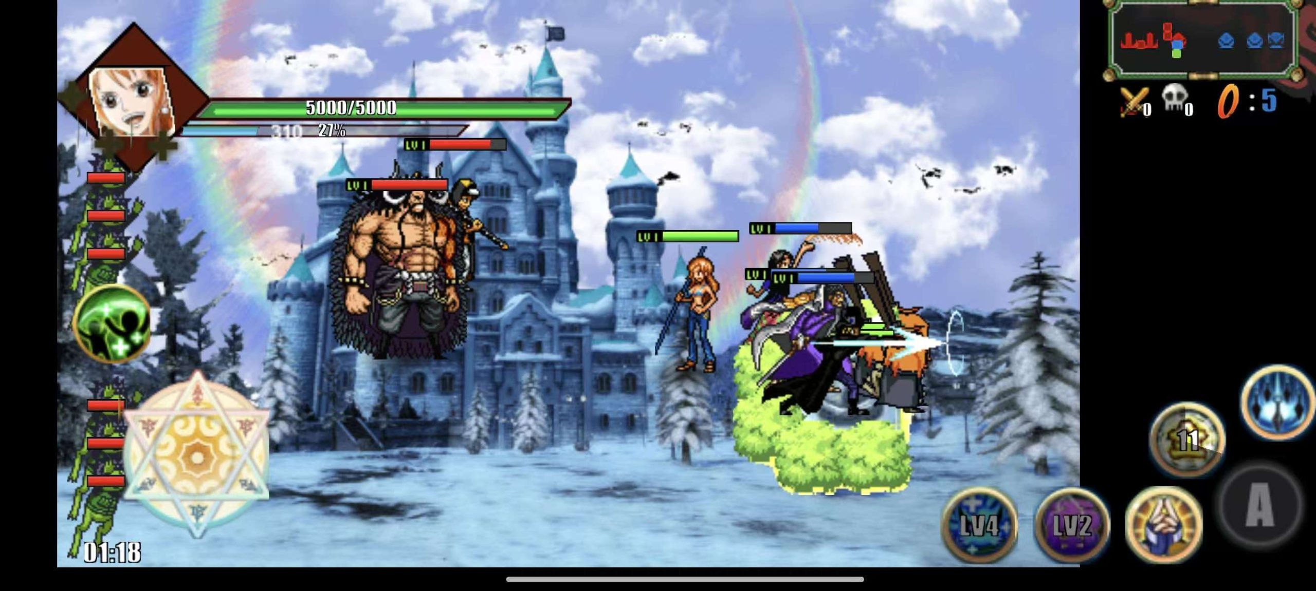《海贼王战记》是一款以经典日漫《ONE PIECE》为蓝本打造的像素风横版格斗手游。海外v1.0.1版本已完整汉化,路飞、索隆、山治等超人气角色全员登场,1v1决斗、3v3团战、生存挑战三大模式一键切换,瞬间点燃海贼热血。像素颗粒完美复刻名场景,技能特效与原作动画同步,霸气色、橡胶火箭炮等必杀一键释放,带来原汁原味又新鲜爽快的掌上格斗体验。