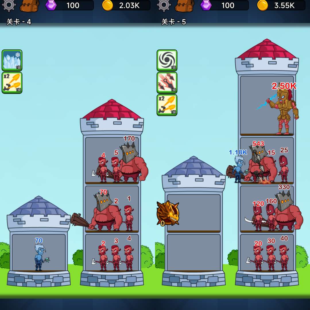 《英雄城堡》是一款融合算术策略与放置闯关的轻量级海外手游,仅49.7MB却拥有极丰富的角色池与装备系统。玩家通过简单拖动即可指挥英雄自动战斗,头顶数字实时变化,形成“大鱼吃小鱼”式数值压制,既休闲又烧脑。游戏分普通闯关与无尽试炼双模式,后期BOSS数值爆炸,考验瞬时计算与阵容搭配,越玩越上头。