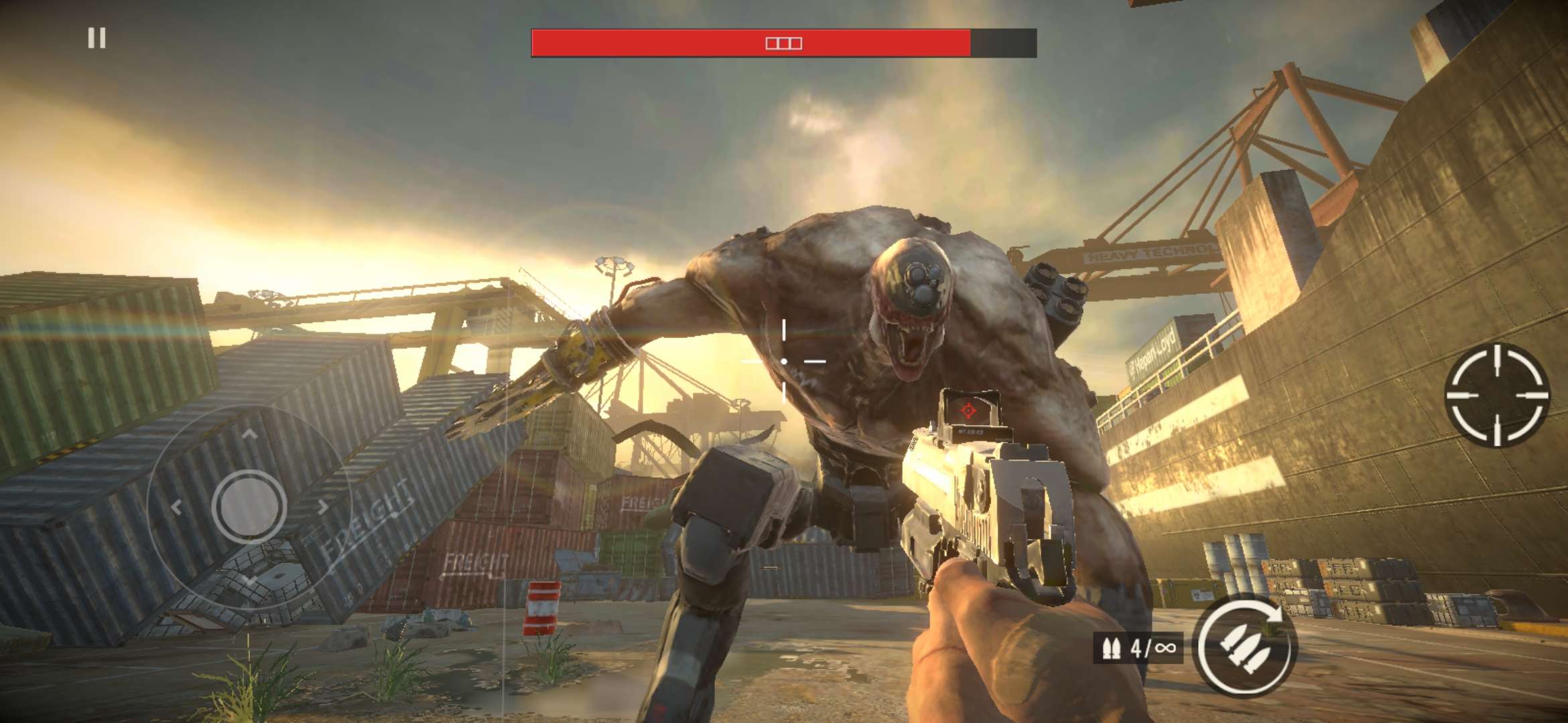 《僵尸港湾》是一款来自赞比亚的离线第一人称射击生存手游,中文界面完整,体积仅383MB。玩家将在被不死族占领的末世港湾中孤军奋战,搜集武器、弹药与医疗包,利用港口集装箱、废弃船舱等复杂地形与尸潮周旋,体验无网络也能畅玩的硬核僵尸生存射击。