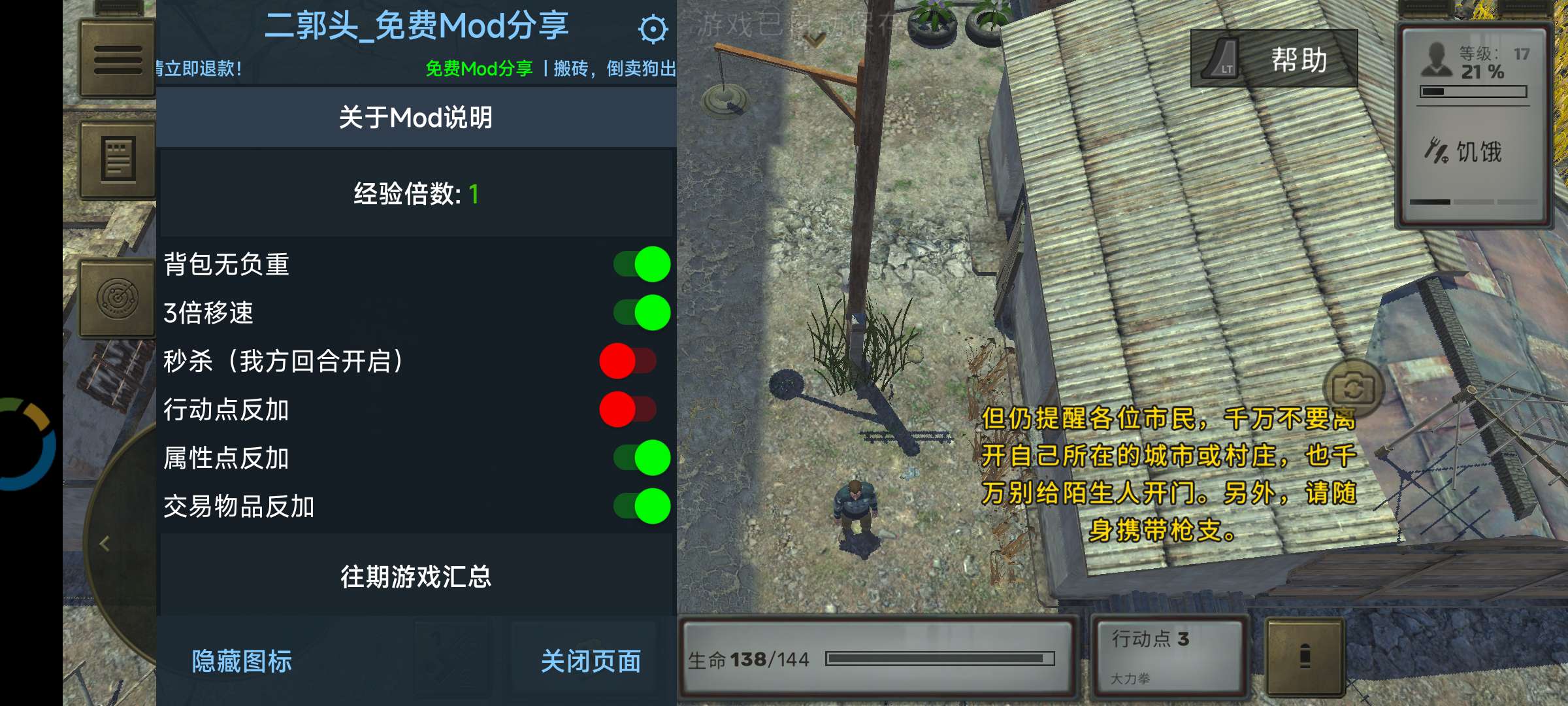 游戏初始需联网验证资源包,后续可离线游玩;存档为本地单机,卸载前请自行备份Android/data/对应文件夹;部分老旧机型在开启“高清渲染”选项时可能出现发热,建议关闭景深与动态阴影;MOD模块需手动放置于指定目录,过度修改可能导致读档失败,建议逐条测试。