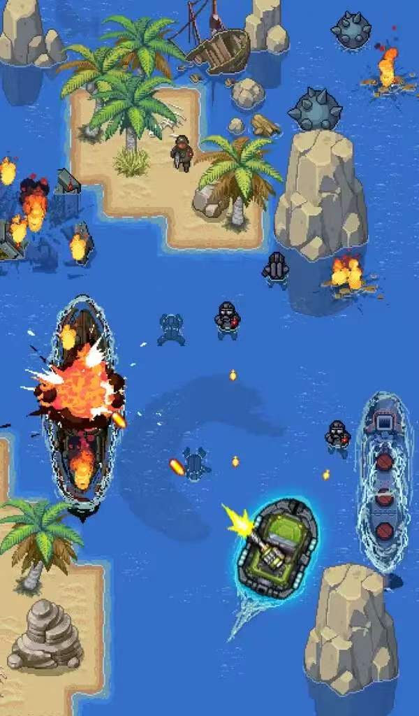 3. 吉普改装:通过关卡奖励升级装甲、引擎与炮塔,打造专属陆地堡垒,解锁“隐形模式”“火焰轮”等黑科技。