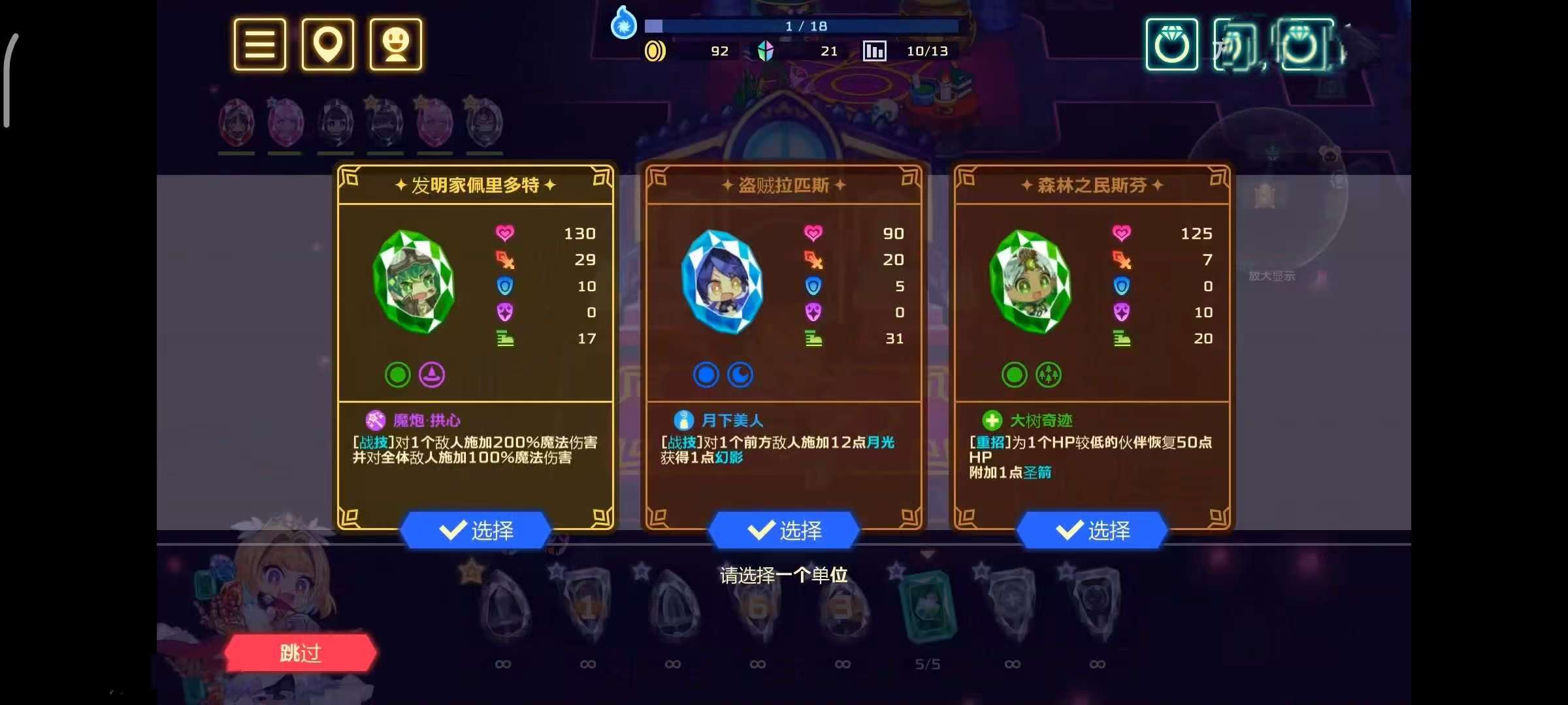 2. 百位宝石英雄:火法、冰骑、暗影刺客等多元职业,激活专属羁绊