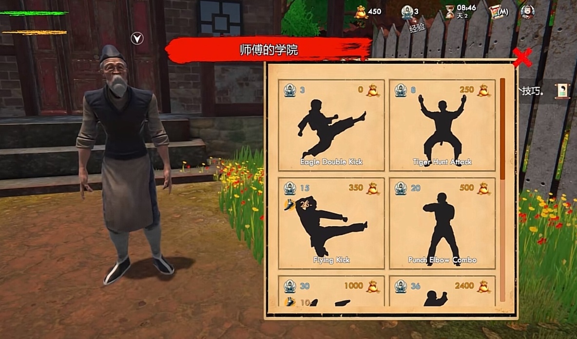 2. 招式收集系统:通过小游戏向各路大师学艺,百余种武学招式任意搭配,打造独家绝学。