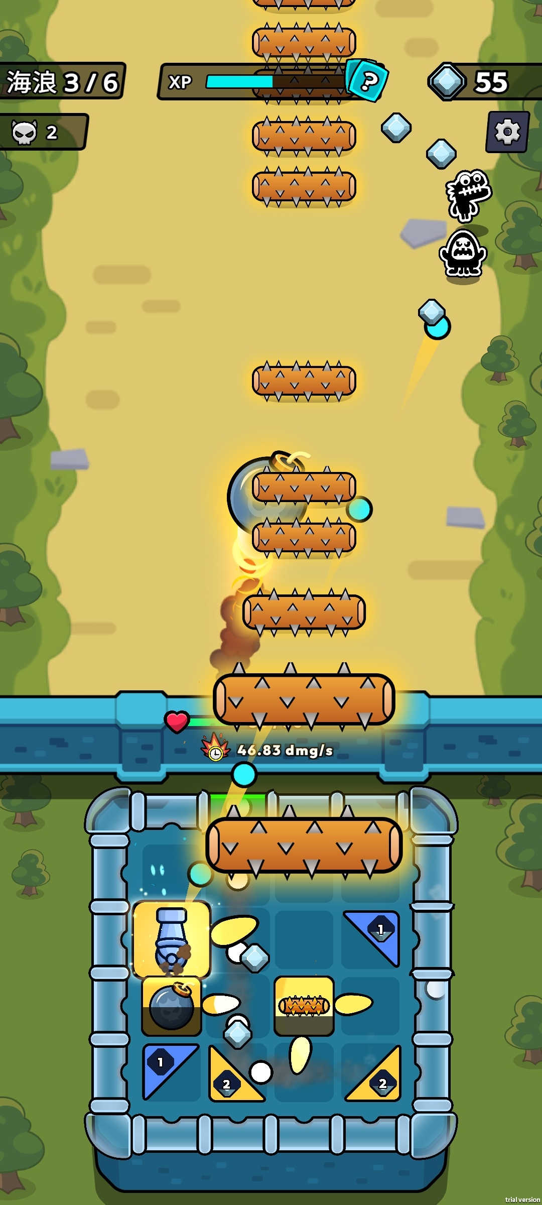 2. 海量技能组合:冰冻、穿透、分裂、爆炸等十余种球体附着效果,自由搭配构筑专属套路。