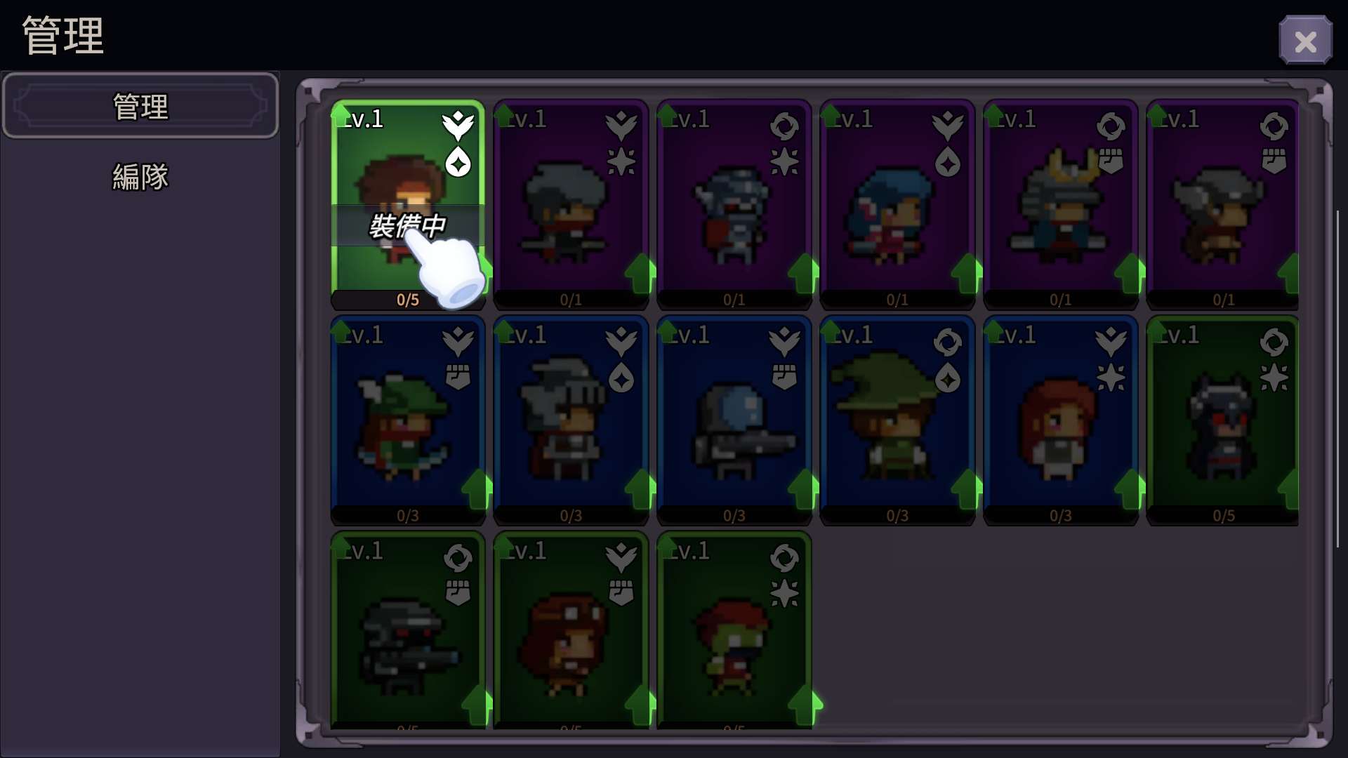 1. 小队构建:六大职业、百余名像素英雄,技能互补,阵容随心搭配。