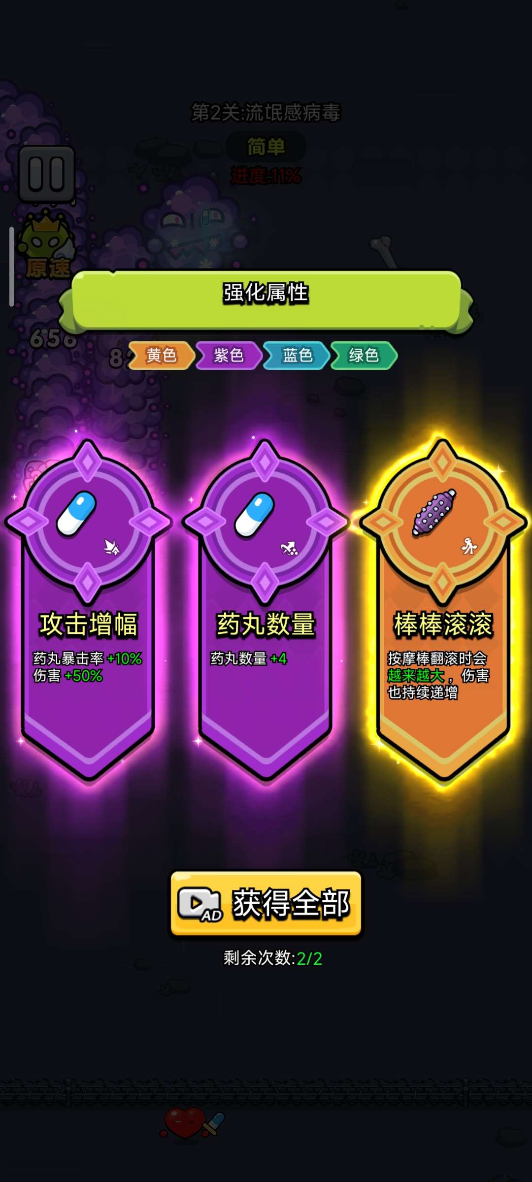 ③ 免广告领取奖励:已解锁免广告通道,金币、抗体胶囊、稀有细胞一键到手;