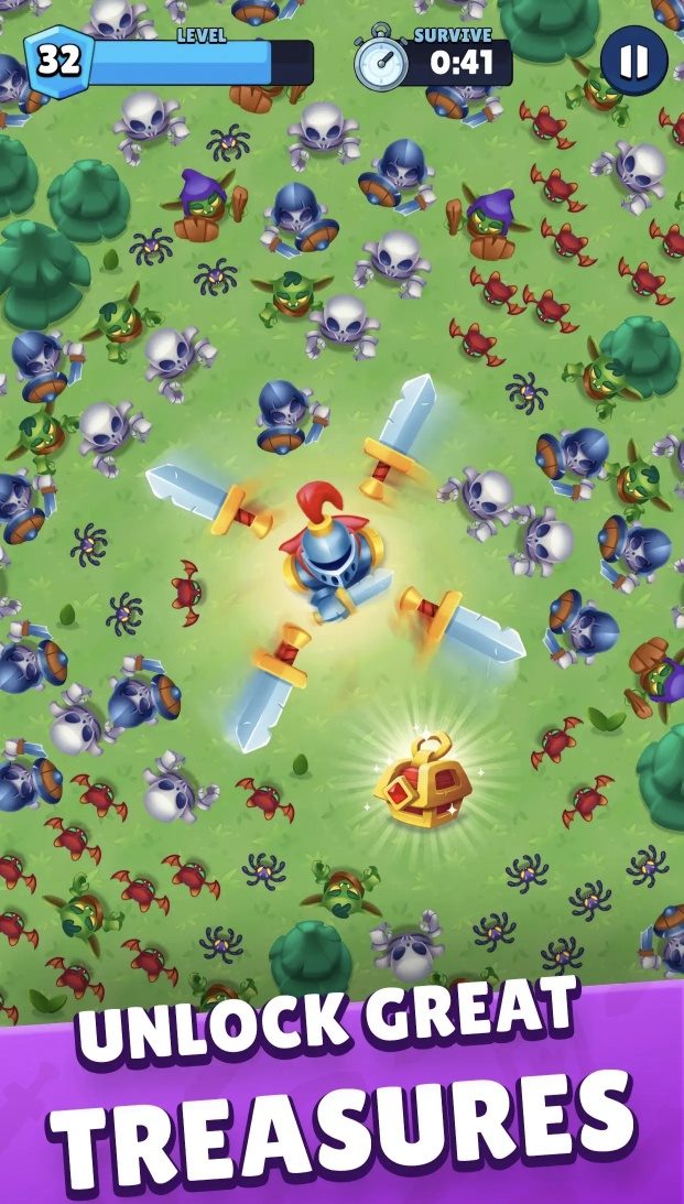 《大逃杀部落生存》是一款融合大逃杀与部落塔防元素的动作手游。玩家将孤身守卫营地,迎战兽人、蝙蝠、骷髅、吸血鬼首领等无尽敌潮,利用剑、弓、法术等多变武器组合,击杀敌人收集掉落实时强化,体验割草式爽感与策略生存并重的独特玩法。