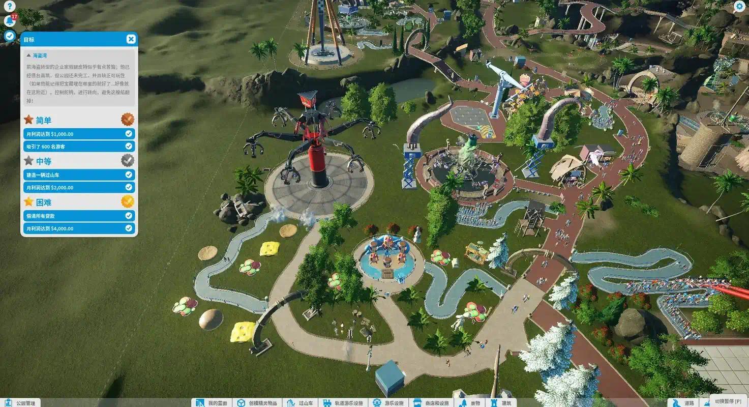 4. 动态天气与昼夜循环:雨雪降低设施可靠度,夜间灯光秀提升游客满意度,事件触发增加挑战。