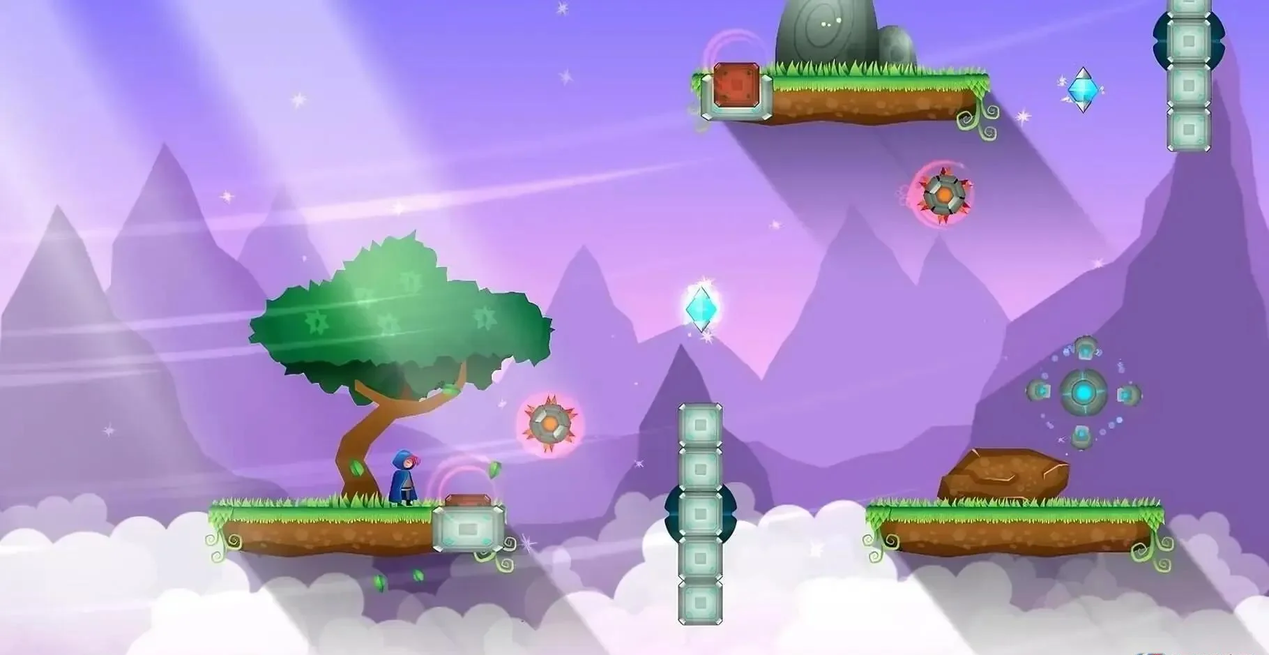 1. 手绘奇幻关卡:四大主题浮岛,超过60道精心设计的平台谜题。