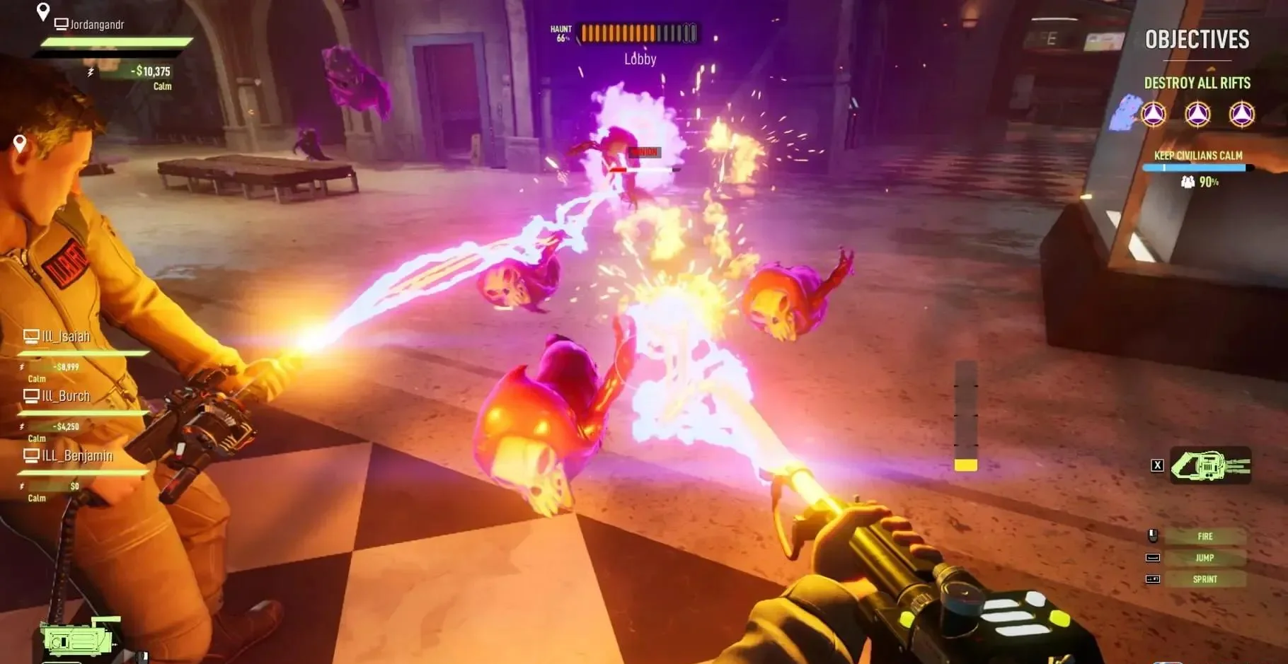 2. 进度解锁:完成对战可获得经验与代币,解锁更多角色皮肤、质子背包涂装及幽灵形态,自定义专属外观。