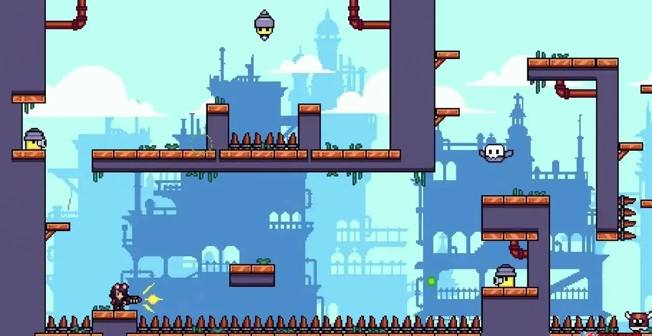 《机械塔 Mechanita》是一款蒸汽朋克风格的2D横向卷轴平台解谜游戏,玩家将扮演戴护目镜的女主角,在50个精心设计的像素关卡中奔跑、跳跃、射击,操控螺旋桨升降机、喷射枪等机关,躲避尖刺与巡逻机器人,登上远端飞船,揭开发条世界的终极秘密。
