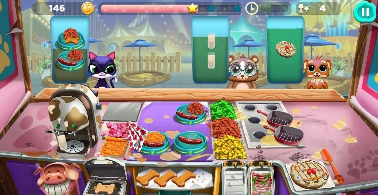 《宠物餐吧 Pet Shop Snacks》是一款专为Switch平台打造的治愈系模拟经营游戏。玩家将化身宠物咖啡厅老板,在温馨小镇中照顾萌猫、升级吧台、学习明星狗狗厨师的独家食谱,用美味与爱心吸引四方来客,体验慢节奏却成就感爆棚的每日经营。