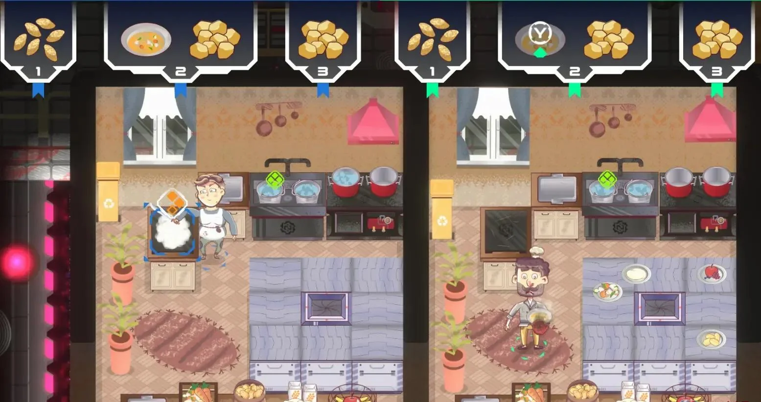 Switch主机:续航版或OLED版,系统14.0以上,存储空间至少3.2GB;MicroSD预留1GB用于后续更新与关卡缓存。手柄:Pro手柄或Joy-Con×4,HD震动与陀螺仪可提升切菜、颠锅交互体验。网络:联机对战建议上行带宽≥5Mbps,NAT类型A/B,延迟<60ms,确保厨房协作不掉线。显示:1080P电视模式可呈现更精细食材纹理;便携模式720P依旧流畅60FPS。音频:佩戴立体声耳机,可听清计时器与订单提示音,抢占黄金上菜时间。