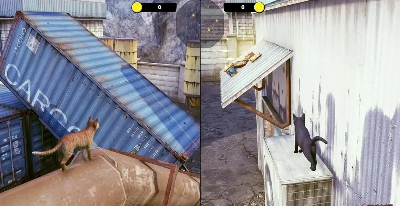 ① 独创猫视角潜行:利用纸箱、货柜阴影躲避敌人,体验“猫式”隐匿。② 16关渐进难度:从废弃仓库到地下管道,每关隐藏3只小猫,全收集解锁隐藏结局。③ 双人分屏:同屏合作救猫或对战抢食,支持Joy-Con分体操作。④ 动态天气系统:雨夜降低视野却提升潜行率,沙尘暴会掩埋道具,策略随时改变。⑤ 中文全程语音+简体界面,剧情对白萌趣治愈,零门槛沉浸。