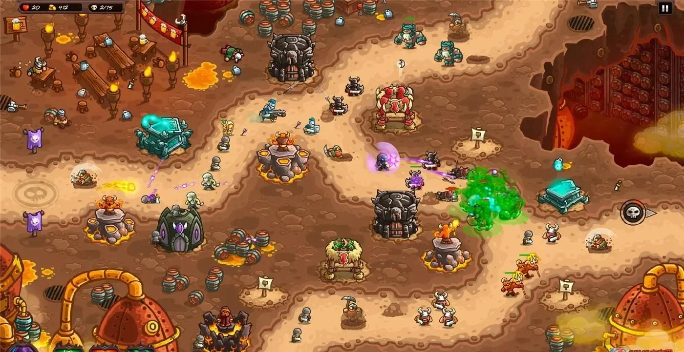 3. 自由塔组系统:11种防御塔×5级分支×30+升级节点,打造个性化杀戮防线。