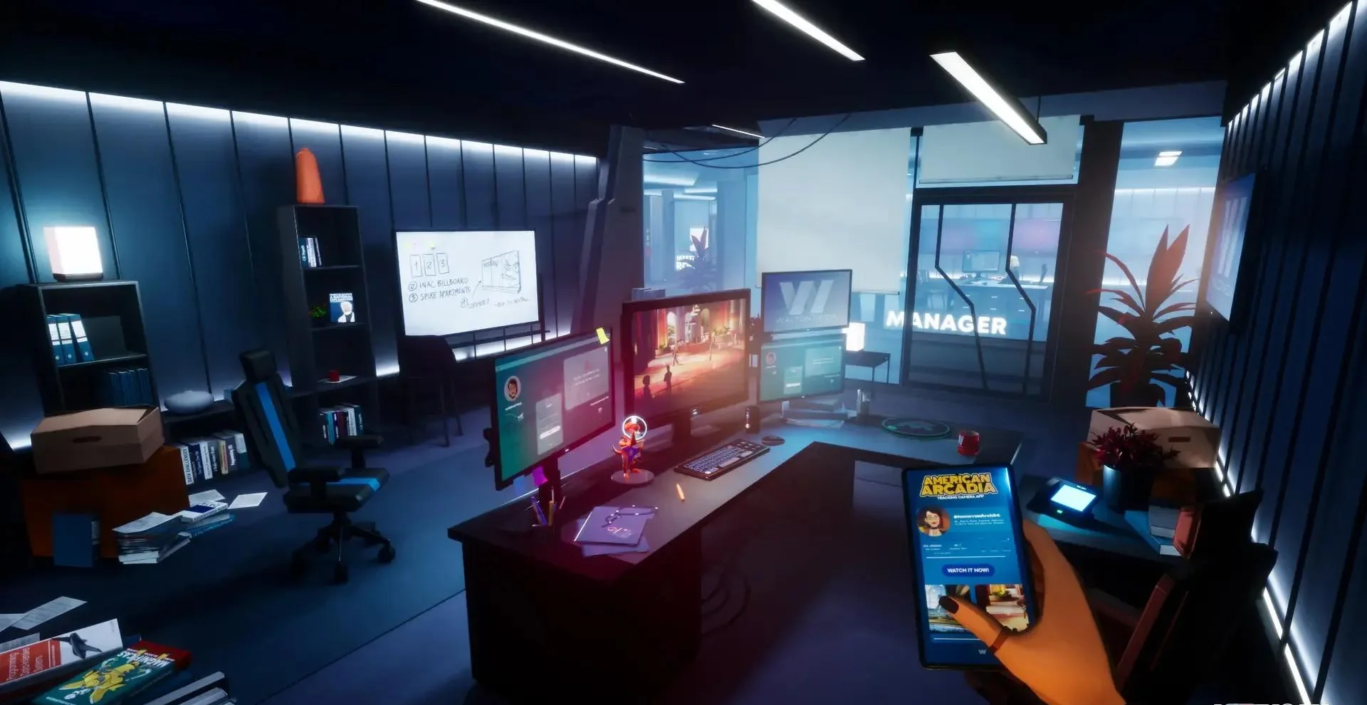 《美国阿卡迪亚》是由Out of the Blue Games开发、Raw Fury发行的横版+第一人称混合冒险解谜游戏,现已登陆Switch并整合v1.0.3中文补丁。故事发生在1970年代复古未来主义的阿卡迪亚城,全城居民过着纸醉金迷的生活,却不知道自己正被24小时直播,一旦收视率下滑就会被“淘汰”。玩家将扮演平凡上班族特雷佛,携手舞台技术员安吉拉,利用2.5D跳跃与第一人称入侵双线操作,突破层层监控与机关,揭穿真人秀黑幕并逃出生天。