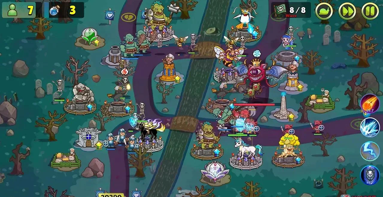 2. 双资源系统:法力召唤+金币升级,考验经济运营与战场调度。