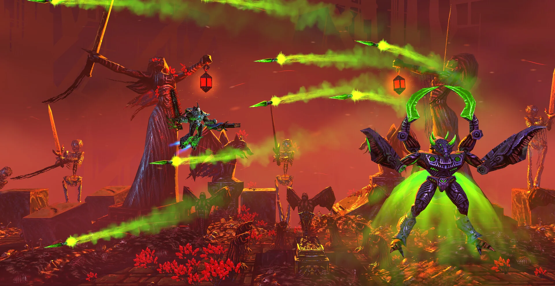 《Valfaris:兽神归来》是经典像素科幻IP《Valfaris》的官方续作,登陆Switch平台并集成v1.2.0更新与美区中文。本作延续2.5D横版卷轴射击玩法,玩家将驾驶机甲兽神在宇宙深处展开复仇之旅,用钢铁与火力追杀宿敌弗沃尔勋爵,体验金属狂潮与爆炸艺术的极致碰撞。