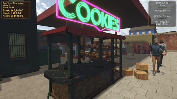 《巧克力摊模拟器》是一款以街头甜品摊为舞台的高自由度经营模拟端游。玩家将从零开始打造自己的巧克力与饼干小摊,补货上架、管理排队、完成日常任务,并通过升级仓储、研发新口味来扩大生意。游戏支持接受正规B2B订单,也可选择铤而走险进行高风险交易,一旦失败将血本无归。丰富的随机事件与多结局路线,让每一次摆摊都充满未知与惊喜。
