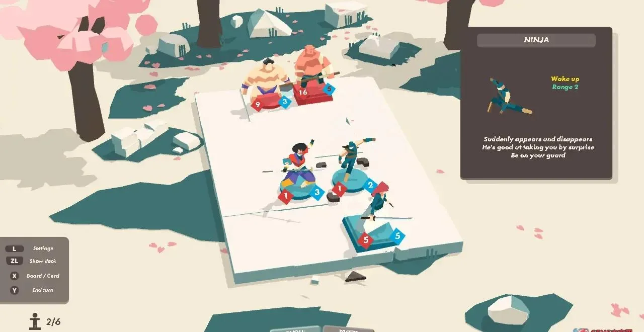 《宫本 MIYAMOTO》是一款专为Switch打造的日式和风卡牌战棋游戏。玩家化身战国智者,通过牌组构筑与棋子走位双线策略,挑战传说中的剑圣宫本武藏。每局战斗随机发牌,收集弓箭手、半藏、黑帮等独特棋子,用战斗币解锁强力技能,逐步打造出专属终极牌组,在樱花飘舞的战场上演智谋对决。