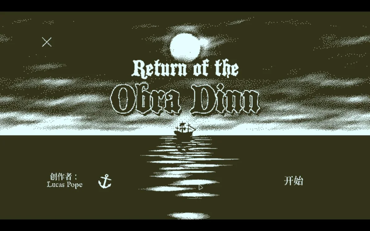 《Return of the Obra Dinn》(奥伯拉丁的回归)是一款由Lucas Pope打造的黑白风格第一人称推理神作。1803年,商船奥伯拉丁号在失踪五年后漂回港口,全员无一生还。玩家扮演保险调查员,携带神秘怀表回溯每位船员临终瞬间,通过逻辑推理拼凑完整事件真相。游戏凭借1-bit复古像素画面与硬核推理玩法横扫TGA、GDCA等多项大奖,被玩家誉为“推理游戏天花板”。