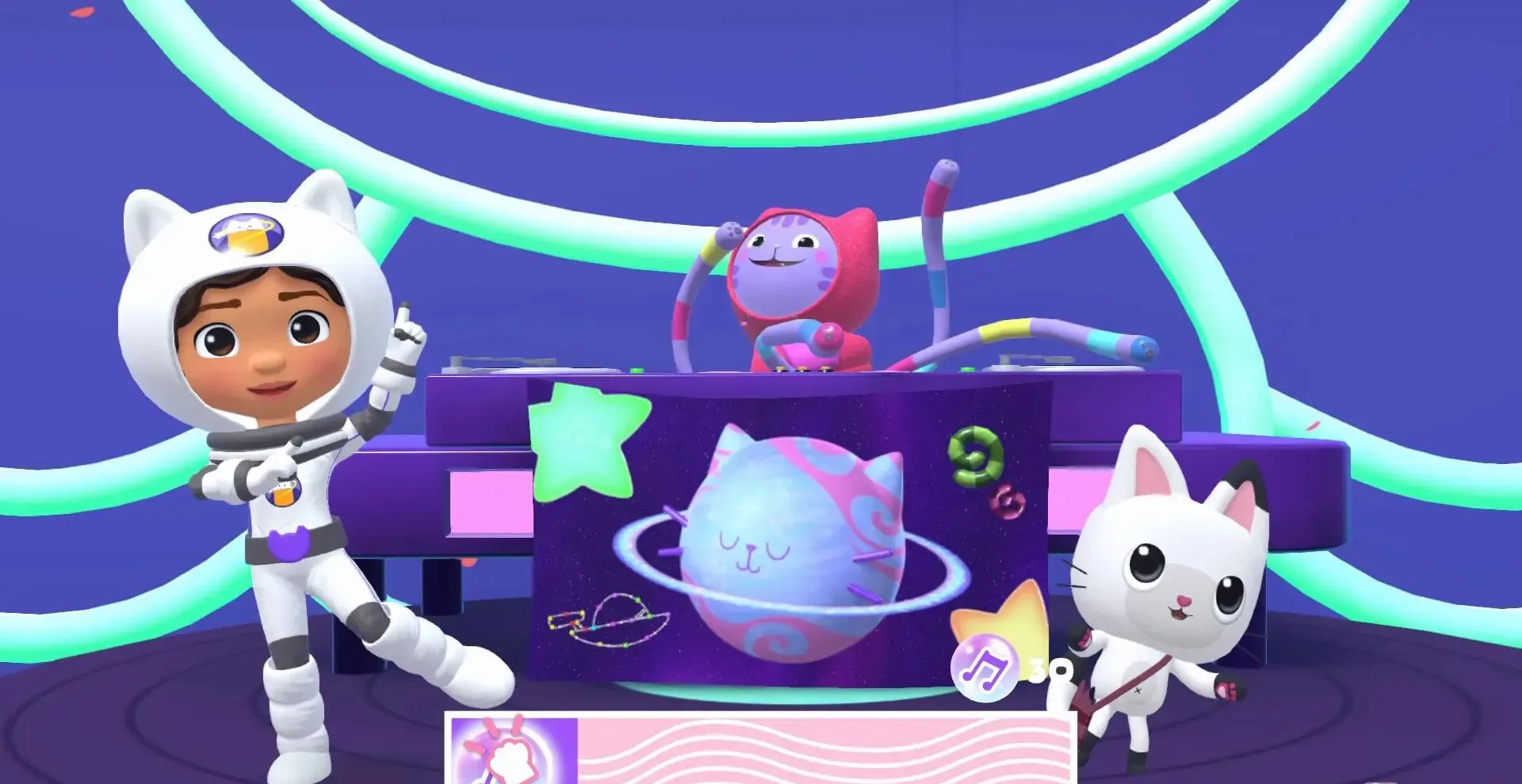 《梦工厂盖比的娃娃屋:准备开派对》是一款专为学龄前儿童设计的派对主题冒险游戏。玩家将跟随盖比与熊小猫一起搭乘神奇的“猫咪电梯”,在色彩缤纷的魔法花园、糖果山、喵星等场景中筹备盛大派对。通过完成烘焙、寻宝、竞速等小游戏收集道具,解锁猫咪主题服饰,支持1-2人本地联机,手柄震动反馈增强沉浸感,是亲子共玩的理想选择。