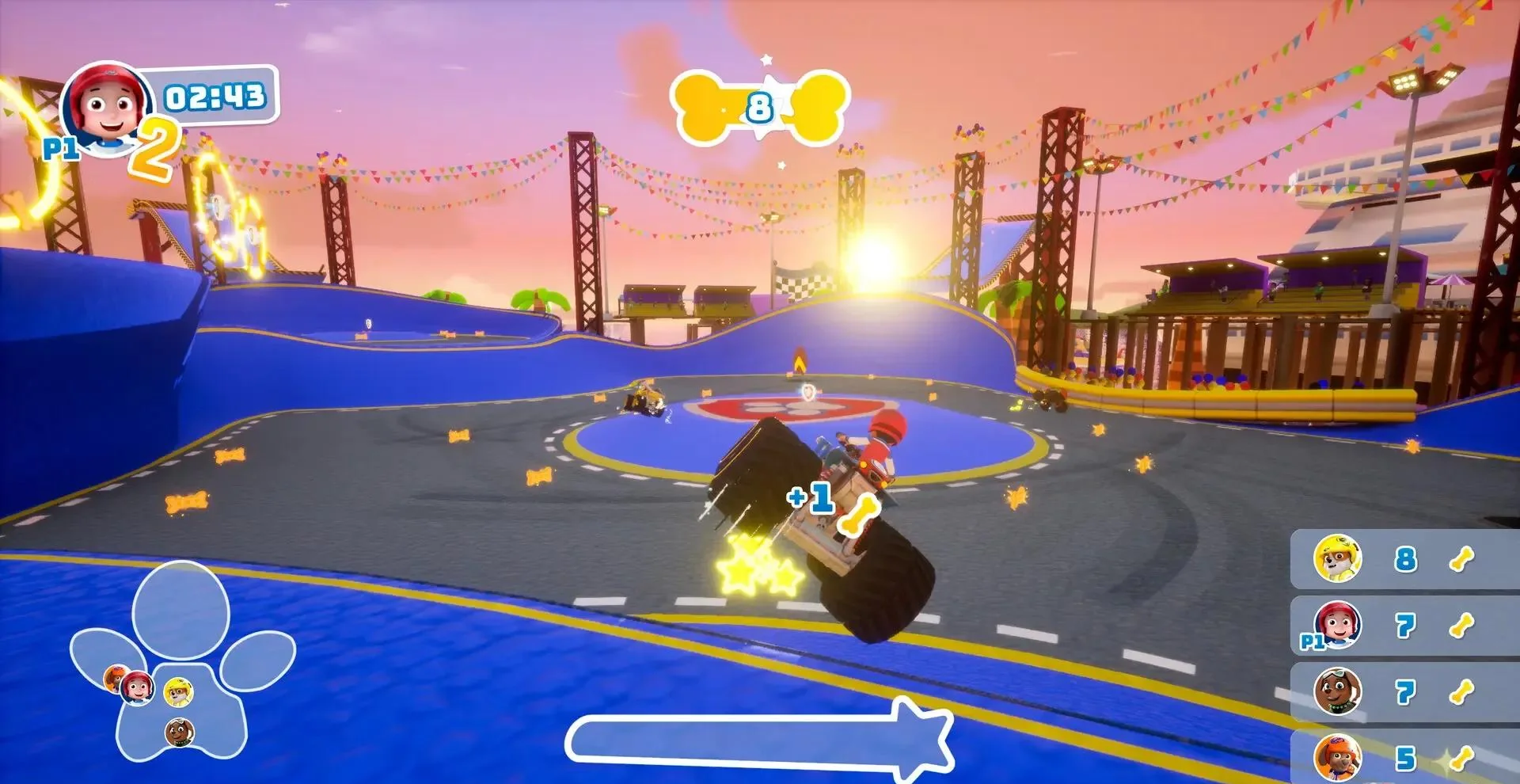 《汪汪队立大功:Rescue Wheels冠军赛》是Outright Games于2025年10月31日推出的亲子向卡通竞速游戏,登陆PS5、PS4、Xbox、Switch与PC全平台。玩家可操控阿奇、天天、毛毛等人气狗狗,也能解锁反派布巴与韩丁纳先生,在冒险湾、丛林、雾底镇等主题赛道中展开欢乐狂飙。游戏支持单人剧情、四人分屏与双人合作模式,并首创怪兽卡车变形系统,让赛车瞬间变大轮碾压对手,带来爆笑又刺激的竞速体验。