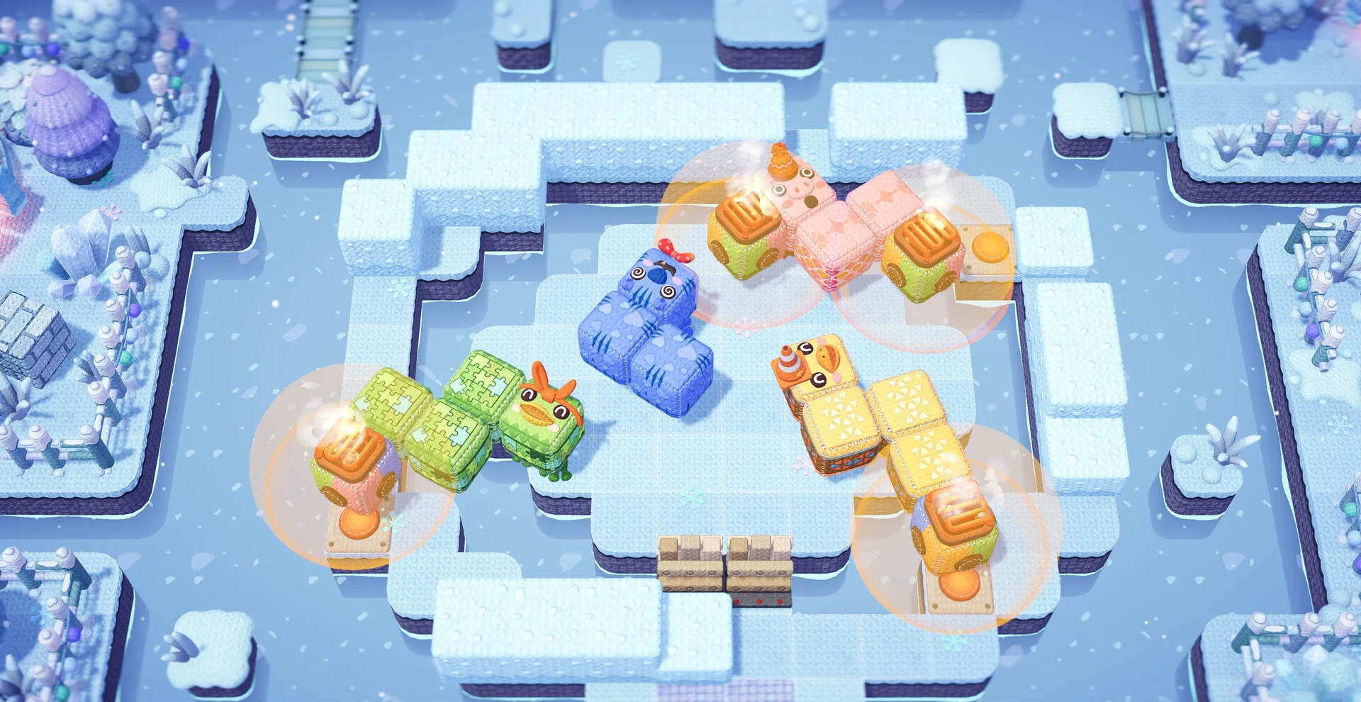 《互帮乐助 All You Need Is Help》是一款专为多人聚会设计的柔软风合作益智游戏,最多支持4人同屏/本地联机。玩家将化身胖嘟嘟的方块小动物,通过推、挤、坐、叠等简单动作,把彼此摆成关卡要求的形状,一起触发终点按钮。没有死亡惩罚,只有欢笑与“HELP!”的尖叫,非常适合情侣、亲子或好友在Switch上随时开一局。