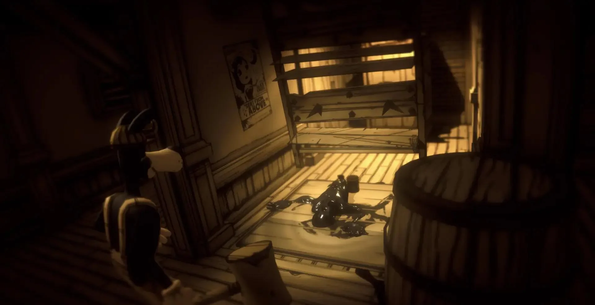 《班迪:孤狼(Bendy: Lone Wolf)》是Joey Drew Studios出品的俯视角恐怖冒险新作,延续《班迪与墨水机器》暗黑卡通世界观。玩家化身“独狼鲍里斯”,手持扳手在墨水污染的工作室中求生,搜集稀缺物资、破解机关、迎战扭曲怪物,并躲避墨水恶魔的无尽追击。Switch中文版v2.0.8整合升级补丁,完整支持简体中文字幕与UI,恐怖氛围再升级。