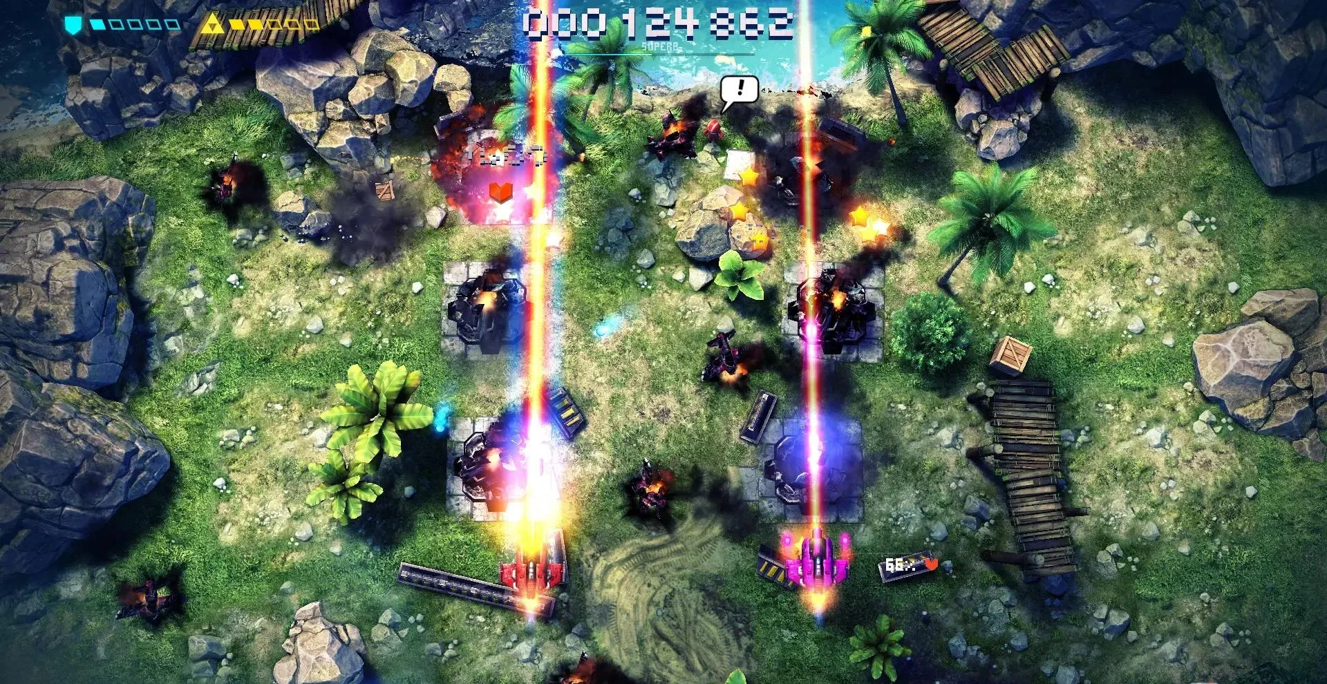 4. 本地双人同屏协作,可复活队友,合力触发超级蓄力弹
