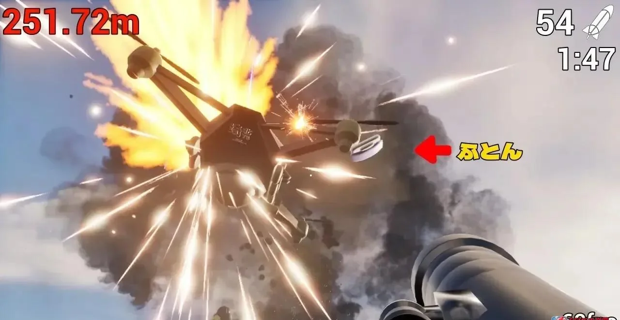 《炸掉蒲团!with Rocket Launcher》是一款脑洞大开的物理射击小品,玩家化身“蒲团快递员”,用火箭发射器当动力,把一张日式蒲团精准发射到1公里外的清洁站。子弹即动力,每发火箭都能让蒲团再飞一段,但一旦落地立刻Game Over。游戏融合抛物线计算、节奏射击与轻度解谜,既考验手速也考验判断力,魔性又上头。