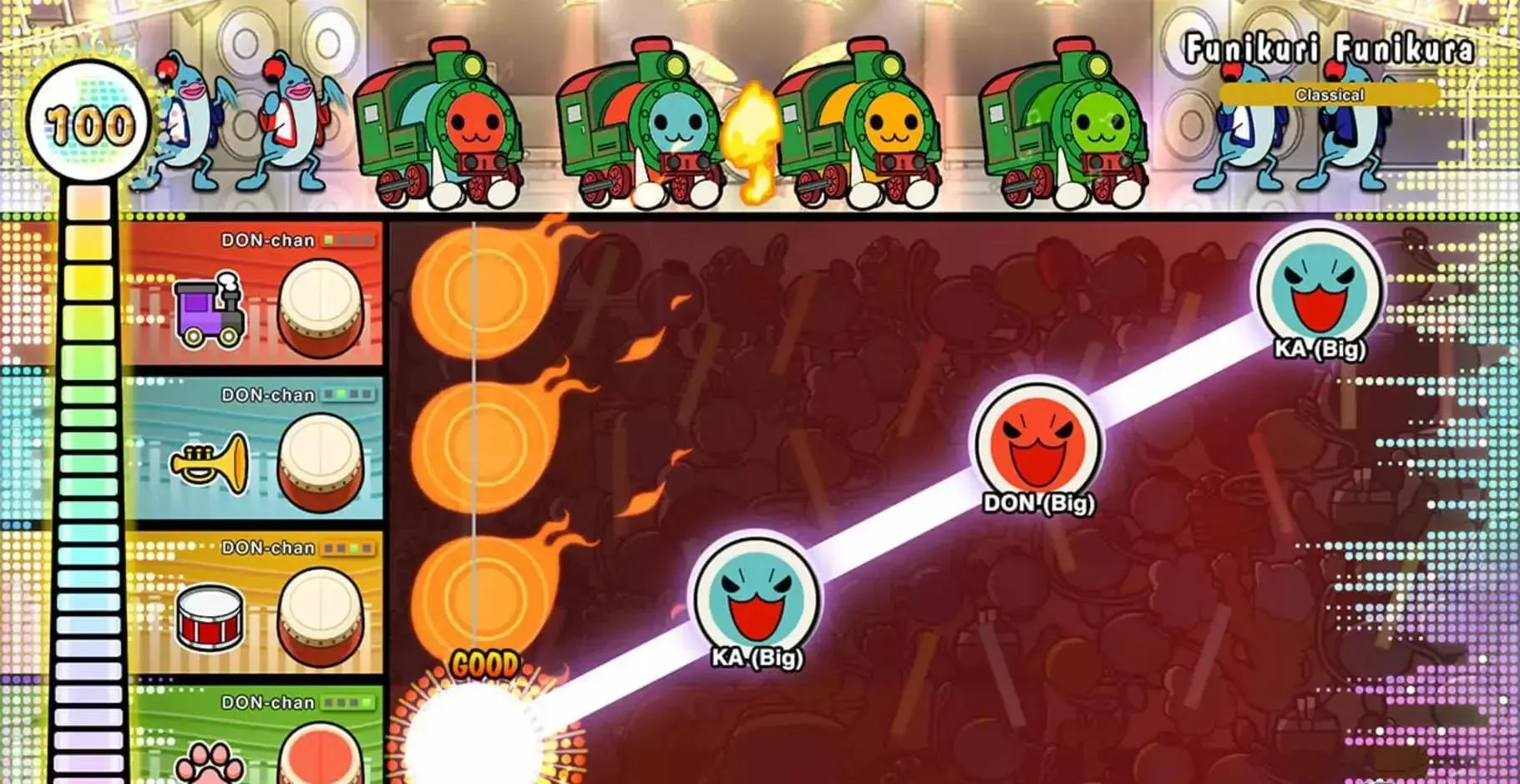 《太鼓之达人 咚咚雷音祭》是Bandai Namco人气音乐节奏系列的PC中文最新作,v2.0.0版本一次性整合首发+季票+免费更新曲目,容量仅3.29GB却收录超120首人气单曲,涵盖《红莲华》《夜に駆ける》《Feel Special》等日漫、K-POP、VOCALOID神曲,支持4人本地分屏与全球联机对战,更可通过“太鼓音乐通行证”云端畅玩1800+追加曲,随时随地解锁打鼓成就。