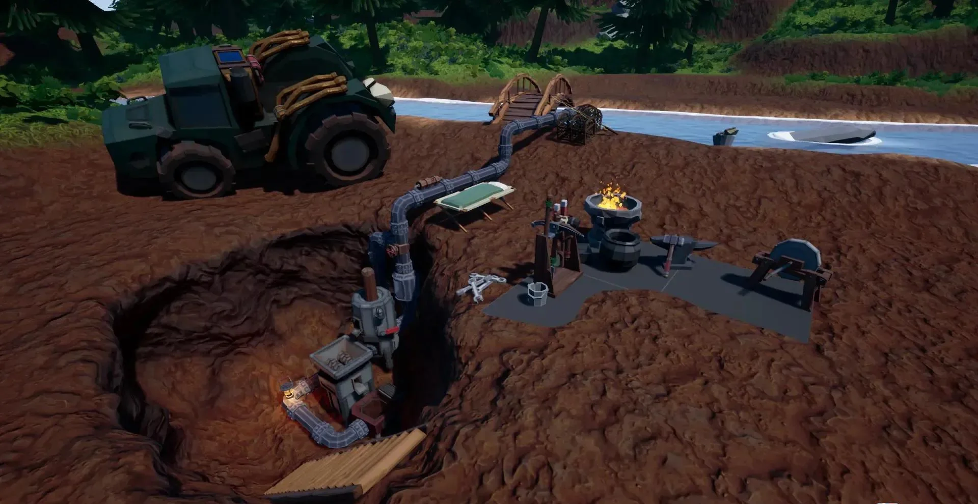 Hydroneer 是一款以挖矿为核心玩法的沙盒经营游戏,玩家从一把铁镐开始,在立体可破坏的地形中挖掘黄金、铁矿与稀有宝石。利用水力机械、管道与逻辑电路,设计自动化采矿线,逐步扩建基地、升级设备,最终成为矿业大亨。游戏采用体素地形系统,可随意开凿隧道、堆叠泥山,打造独一无二的地下王国。