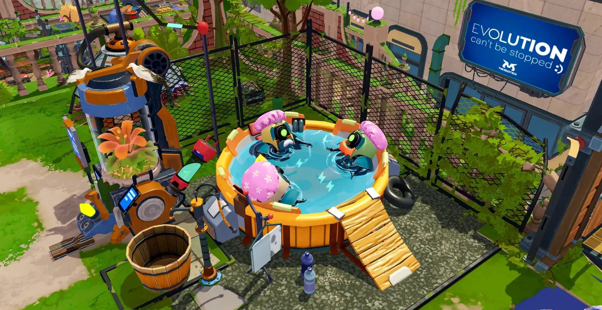 3. 高自由度建造:屋顶营地可铺设地板、架设温室、布置霓虹灯,打造空中花园或赛博农场。
