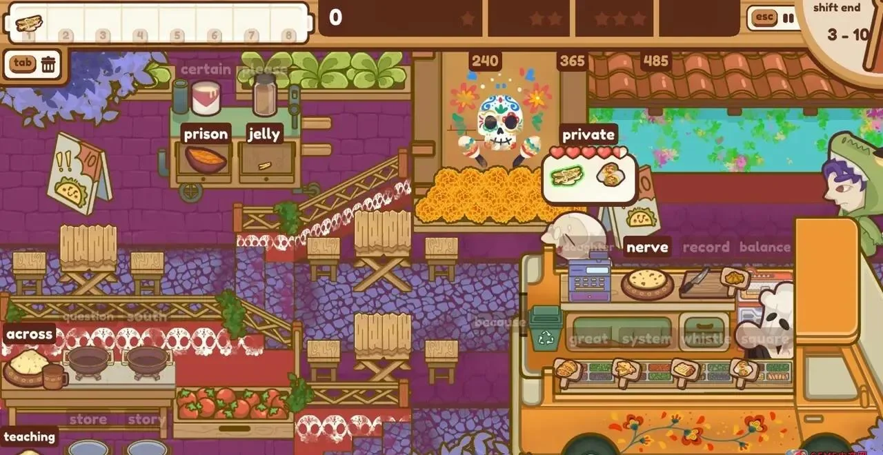 1. 创新打字玩法:每个食材、每道菜品对应单词或词组,准确率和速度决定色香味。