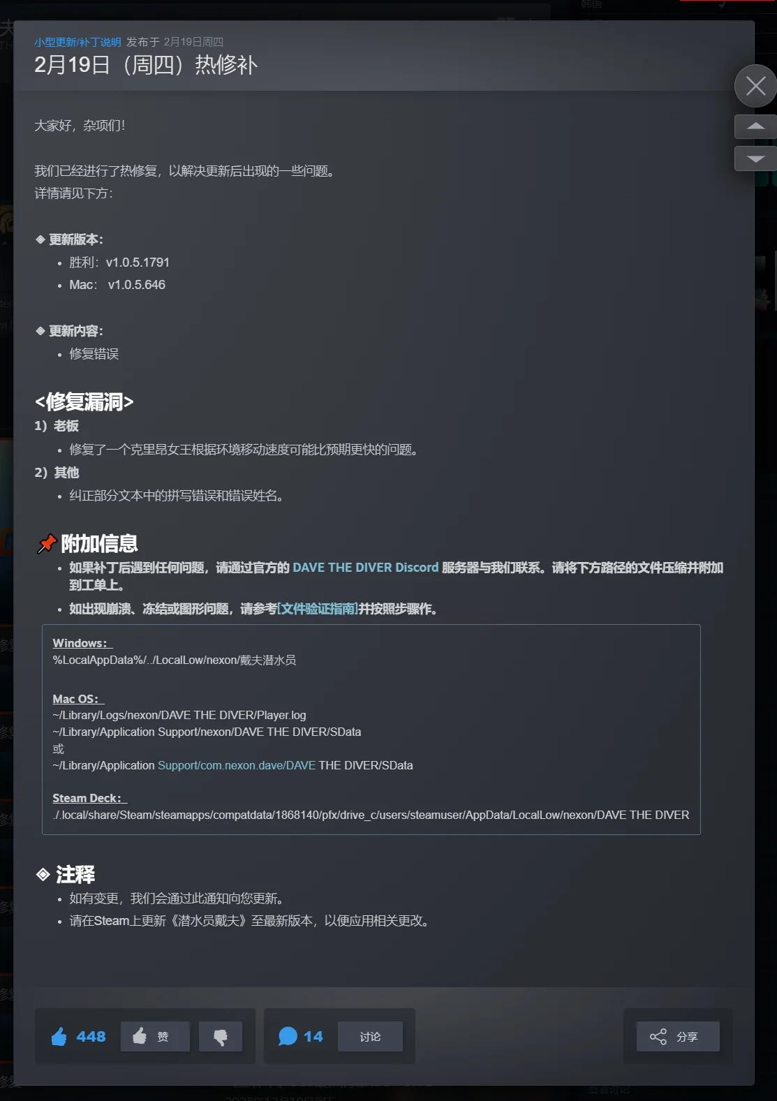 首次运行请使用管理员权限启动游戏;路径勿含中文以防闪退;Win7用户需提前安装DX11运行库与VC++2015-2022合集;存档位于C:\\Users\\你的用户名\\AppData\\LocalLow\\mintrocket\\DAVE THE DIVER,建议定期备份。