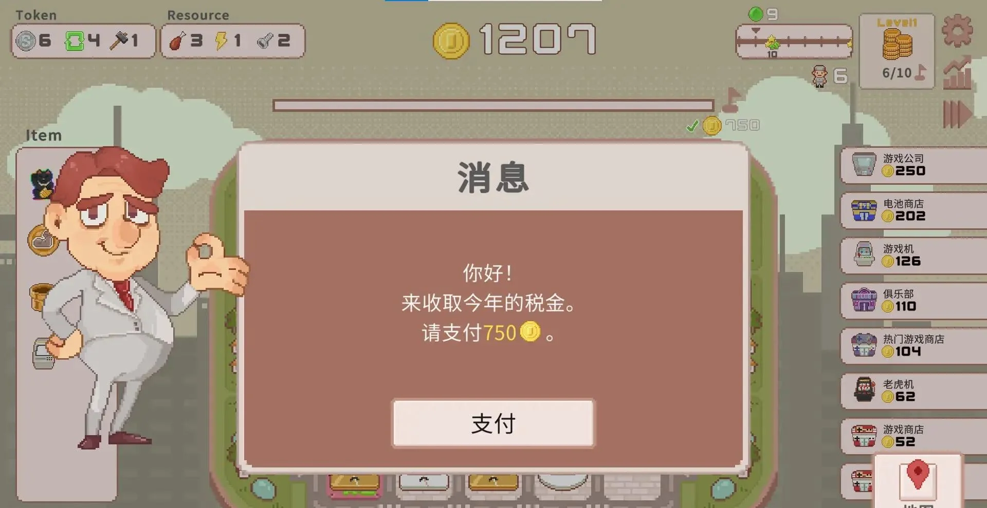 《超增税都市 SuperTaxCity》是日本独立团队soramame-koubou打造的Roguelite像素风城建策略游戏,2025年1月登陆Steam并同步更新官方中文Build.18872860。玩家化身临危受命的市长,在限时内合理布局超过100种特色设施,吸引居民劳作纳税,用丰厚资金抵御逐轮飙升的“超级增税”,否则城市将瞬间毁灭。每局系统随机推送3座建筑,工厂高收益却占空间,商店灵活却利润薄,30+关卡附带特殊规则与突变事件,百余种道具可叠加增益,挑战你的规划极限。