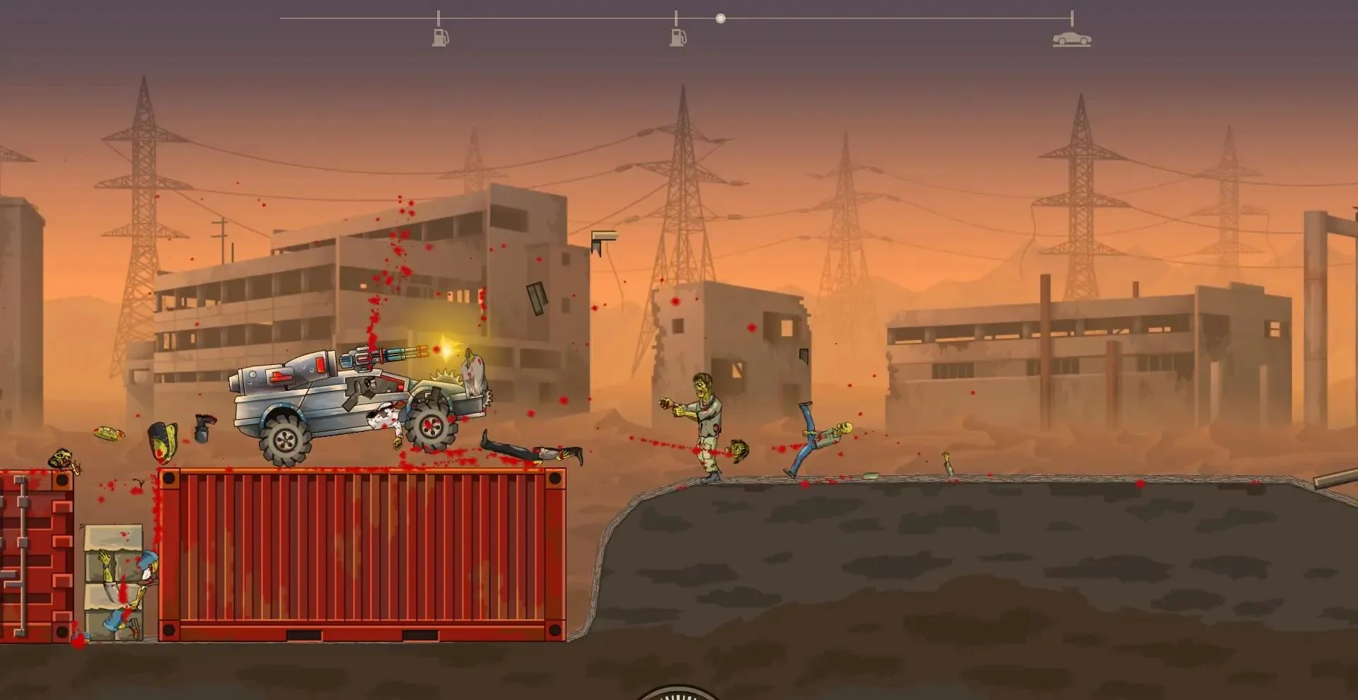 《死亡战车2(Earn to Die 2)》是一款由Toffee Games打造的2D横版末日赛车生存游戏。玩家将驾驶改装战车穿越被僵尸占领的废墟城市,突破重重障碍前往撤离航船。游戏融合赛车竞速与僵尸生存,提供10种可解锁车辆与海量升级部件,带来爽快碾压与策略改装双重体验。