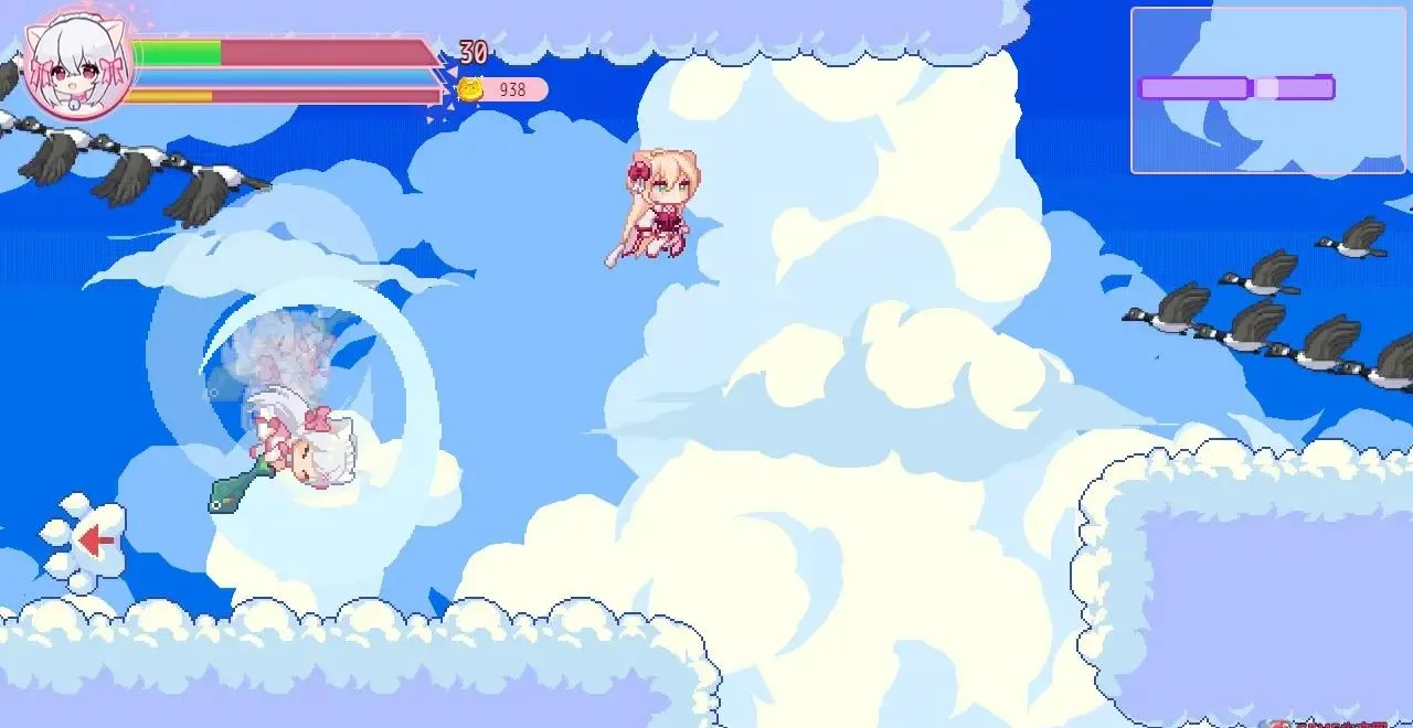 《咸鱼喵喵》是一款以“猫耳娘”为主角的类银河战士恶魔城横版动作冒险游戏。小镇居民一夜之间全变成猫耳少女,玩家将操控手持巨型鱼剑的喵露露踏上调查真相的旅程。游戏采用手绘2D像素风,地图庞大且充满隐藏通道,猫币收集与饰品搭配系统让角色成长路线多样,AI队友与动态难度调节则兼顾新手与硬核玩家。