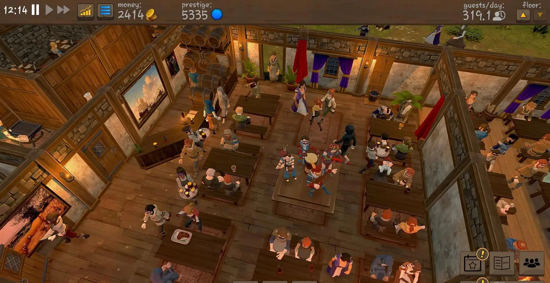 3. 多元经营路线:可扩建旅店、武器铺、外卖窗口,研究菜谱、酿酒、举办宴会,收益翻倍。
