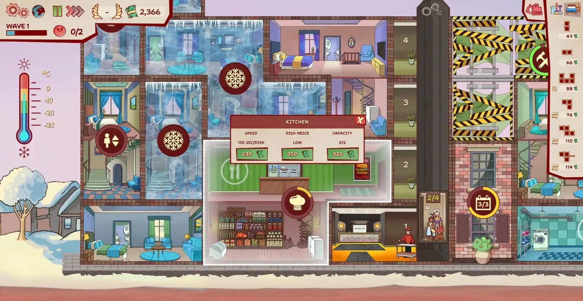 2. 员工养成与排班:前台、保洁、安保、厨师等岗位各有技能树,培训升级后解锁“多语言接待”“极速整房”等Buff,合理排班可大幅降低运营成本。