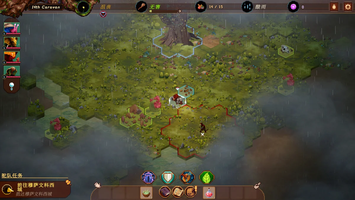 《Sandwalkers沙行者》是一款融合Roguelike与回合制策略的生存冒险端游。玩家将率领科考驼队穿越被沙暴与怪物吞噬的末世沙漠,在随机生成的地图中寻找水源、遗迹与资源,建立临时营地并护送信使将气候数据传回王国。每一次远征都是全新旅程,永久死亡机制让决策更紧张刺激。