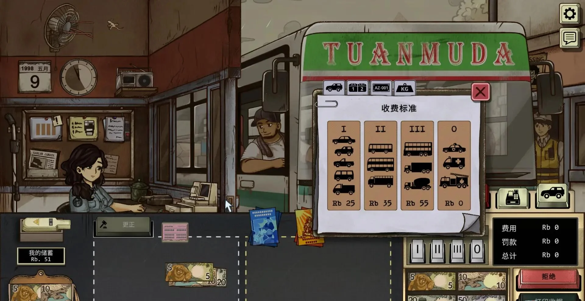 《1998:收费员的故事》是GameChanger Studio打造的第一人称叙事模拟佳作,背景设定在物价飞涨、内乱频仍的虚构东南亚国度贾纳帕。玩家化身怀孕收费员黛薇,每天坐在狭小的收费站窗口前,为来往车辆核查证件、收取通行费。面对规则与人情的拉扯,你的每一次点击都可能改写自己与腹中胎儿的命运,体验90年代复古像素风下的沉重母爱。