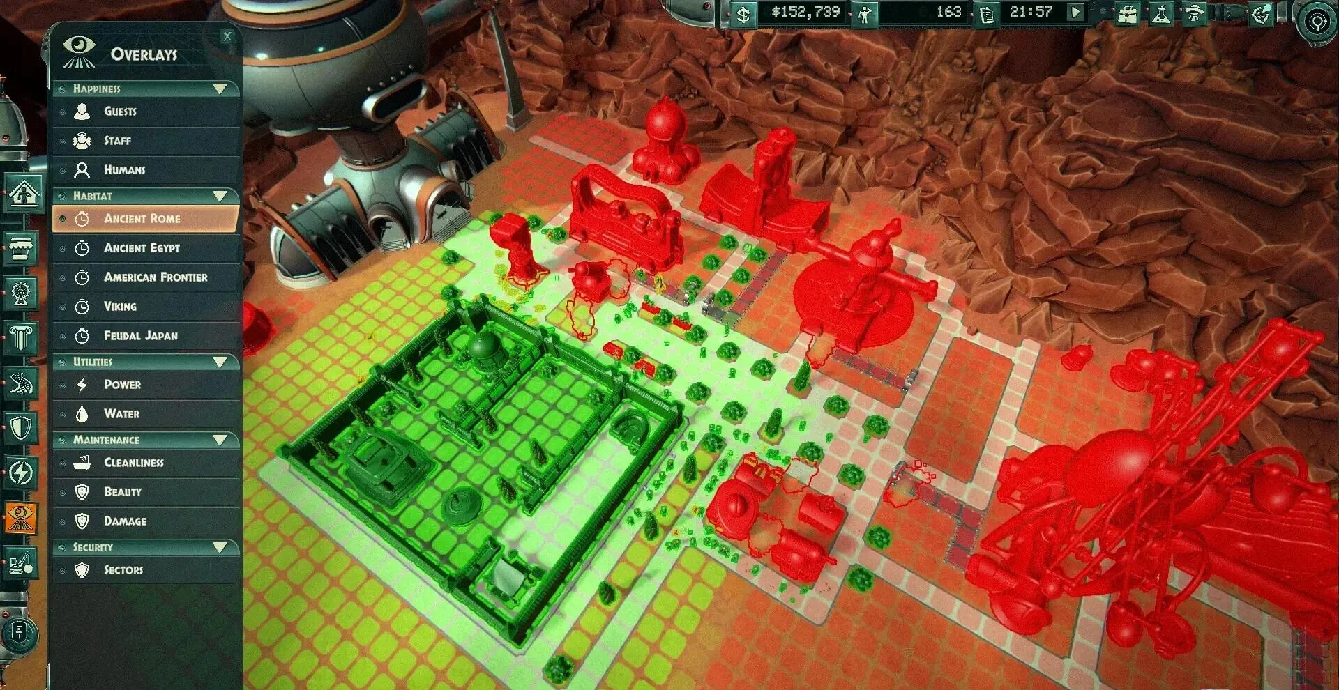 3. 双重经营维度:既要满足火星游客的刺激需求,又要镇压人类俘虏的暴动,策略深度翻倍。