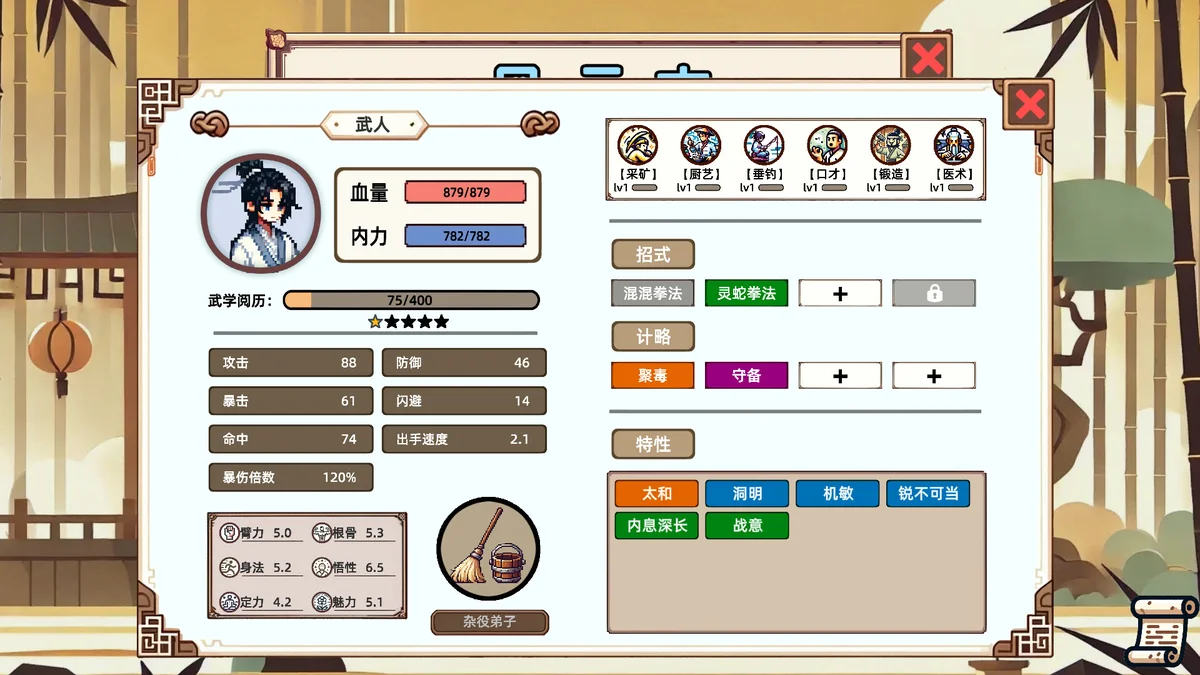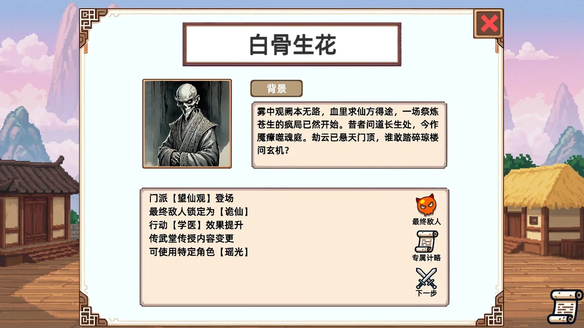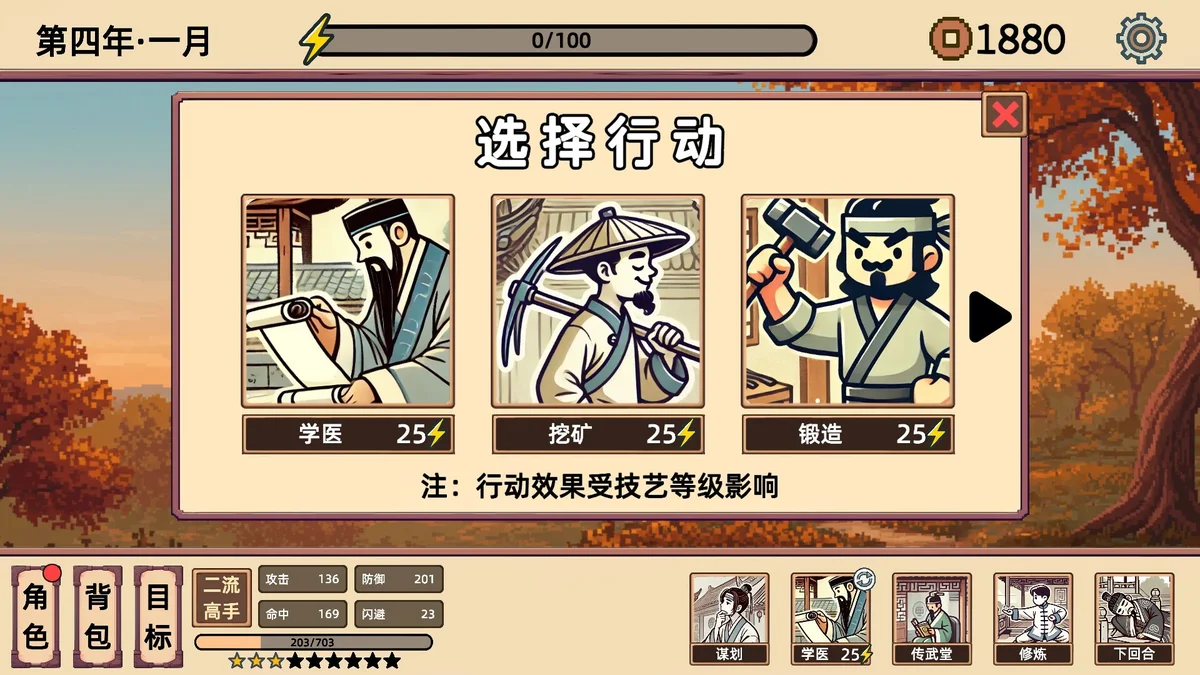 《小小侠客模拟器》是一款以古代武侠世界为背景的Roguelike回合制策略游戏。玩家将化身初出茅庐的侠客,通过收集、组合上百种武学招式与计略,打造专属流派,挑战层出不穷的随机事件与强敌。每一次开局都是全新江湖,策略与运气并存,带来高重玩价值的冒险体验。