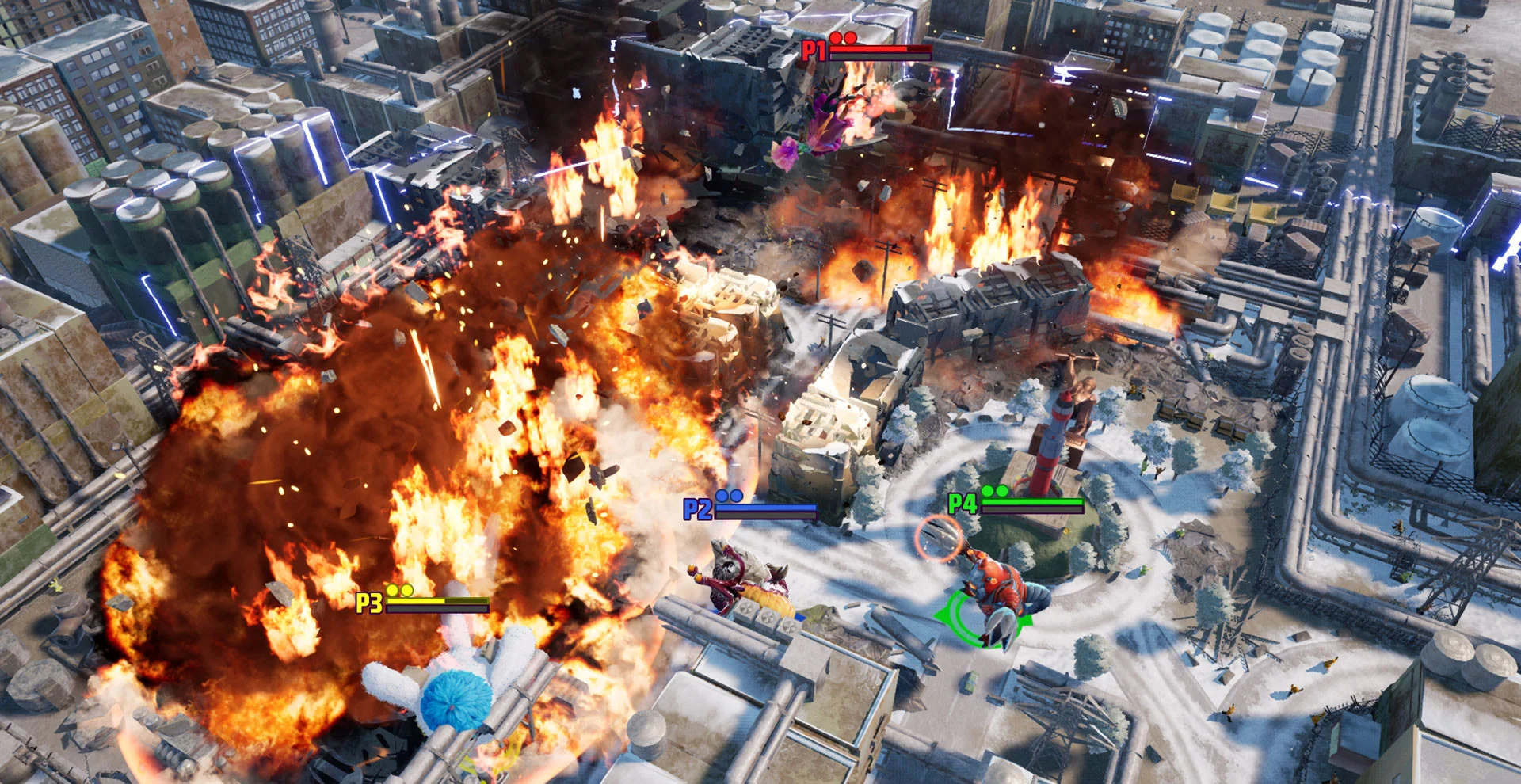 《巨击大乱斗 GigaBash》v1.7.2官方中文版是一款支持4人同屏对战的3D怪兽格斗游戏,容量仅10.2GB,却汇集了哥斯拉式巨兽、高达风机甲与都市战场破坏的爽快感。玩家可在10+风格迥异的巨型角色中挑选,利用场景高楼、汽车甚至火山熔岩作为武器,将对手轰出屏幕。游戏兼顾易上手与深度博弈:轻攻击连段、蓄力重击、闪避取消、S能量爆发与终极Giga必杀,让新手也能打出华丽连段,硬核玩家亦可钻研帧数据与地图互动。