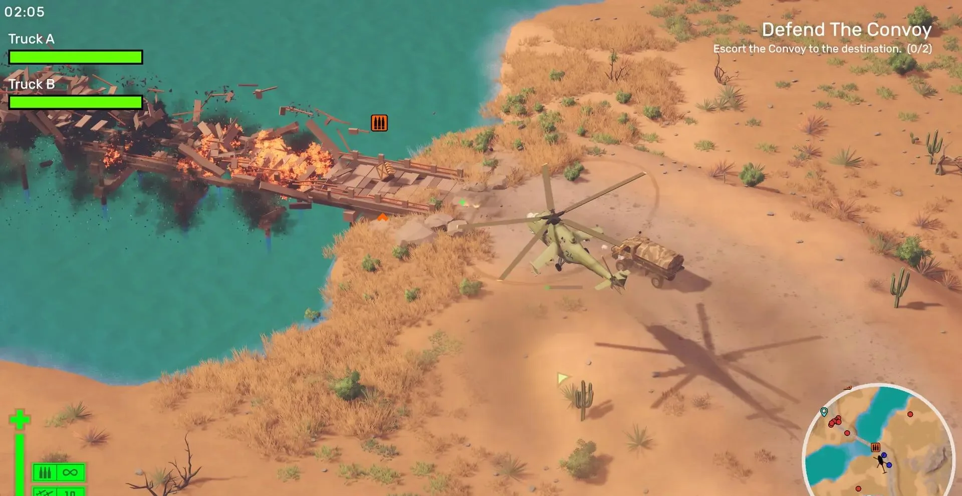 《允许开火(Cleared Hot)》由 Not Knowing Corporation 倾力打造,是一款致敬《沙漠风暴》的复古风直升机射击单机游戏。官方中文版本 Build.20878958 已同步上线,容量仅 4.17GB,支持 PC 端即下即玩。玩家将驾驶全副武装的直升机驰骋沙漠、丛林、极地三大动态战场,利用真实物理引擎吊起敌人、载具甚至建筑,实现创意打击。昼夜交替与夜视/热成像系统让每次出击都充满未知,双摇杆操控+上帝视角带来街机爽感与轻度战术深度,是飞行射击与物理模拟爱好者不可错过的年度佳作。