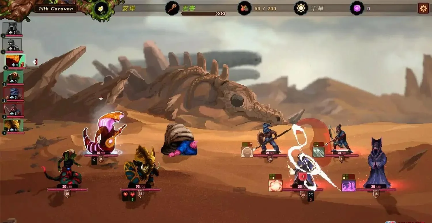 《沙行者 Sandwalkers》是一款Roguelike回合制策略生存游戏,背景设定在气候崩坏的费提大陆。玩家将率领姆卡部落每十年一次的远征队,穿越酸雨、沙暴、极寒等极端天气,与怪物、海盗斗智斗勇,建立外交、贸易与新树城,把队员记忆封入晶球送回故乡。v2.2.2a官方中文版容量仅2.4GB,完整支持简体中文界面与字幕,带来原汁原味的故事体验。